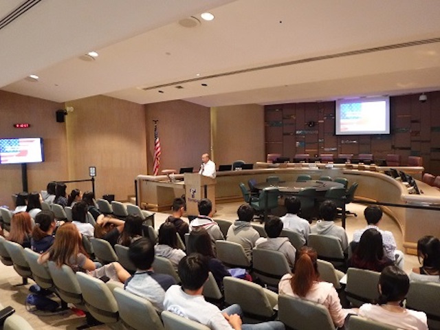 大学教授や観光局副社長等による講義では、「グローバリゼーションとグローバルリーダーの理解」、「持続可能性」などをテーマとした講話を聞き、研修生は現代社会が求めるリーダーやその必要性について自分の考えを述べていました。また、アメリカでは市庁舎訪問を行い、テンピ市の多種多様な人種や生活に対応する取組から、国際環境における市政が担う役割について学びました。